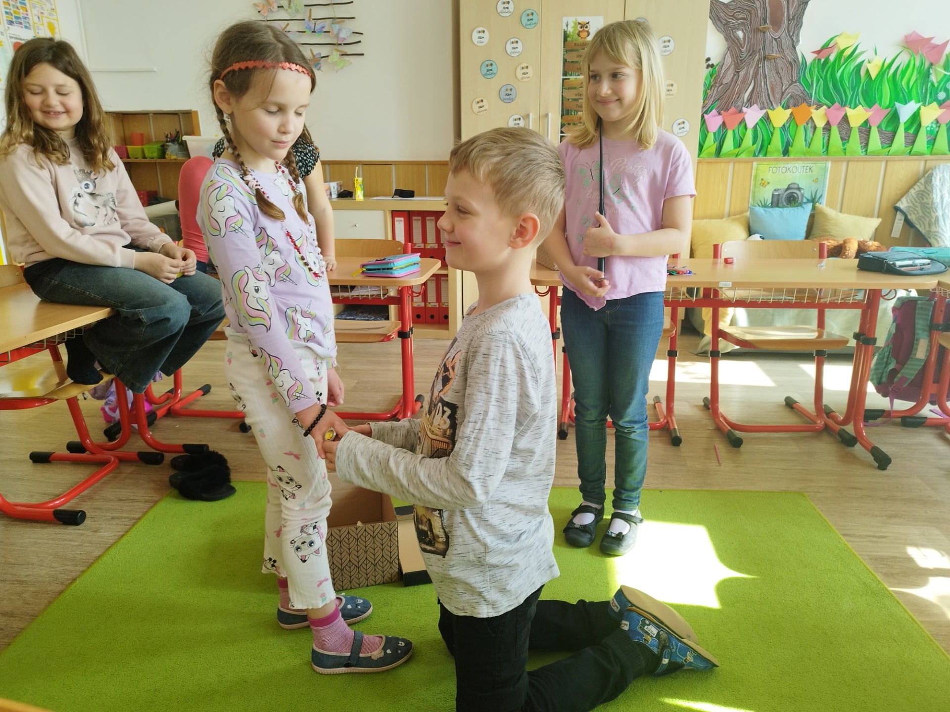 Nejoblíbenější aktivitou se staly příběhové boxy – tajemné krabičky plné předmětů, které děti inspirovaly k tvorbě vlastních vyprávění. Společně jsme četli legendy o králi Artušovi i kněžně Libuši, zapisovali poznámky do výzkumných sešitů a učili se rozlišovat mezi skutečností a fantazií.