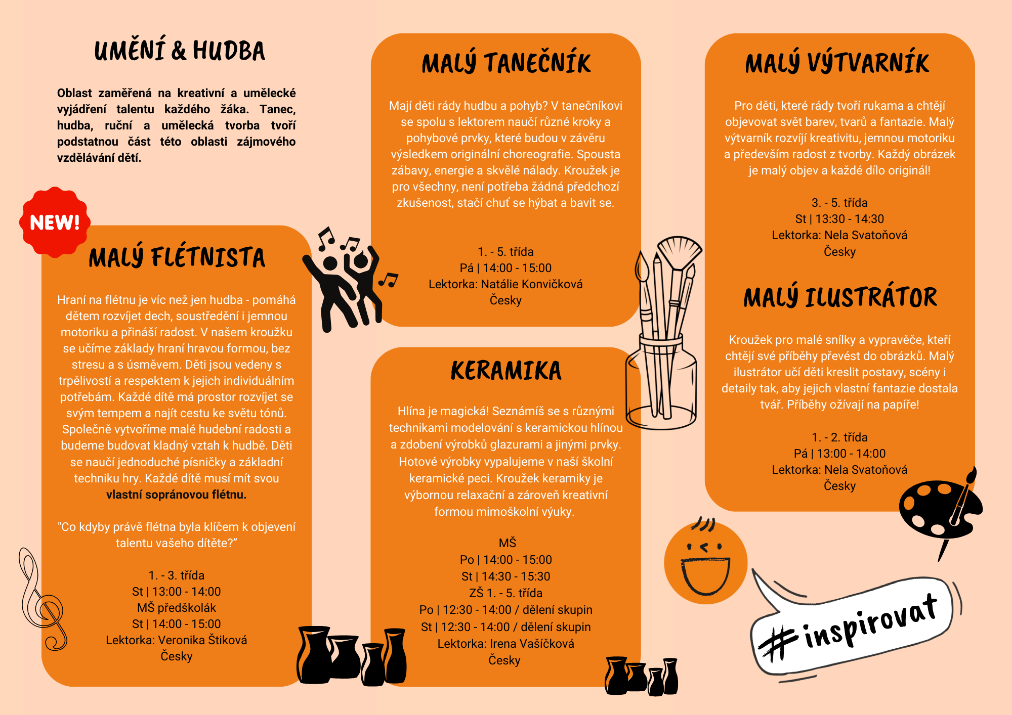 Přinášíme Vám nabídku zájmových kroužků na I. pololetí školního roku 2025/2026.